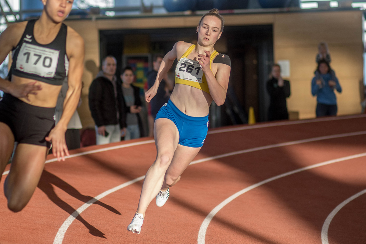Mit zwei fünften und einem zwölften Platz startete Friderike Limberg (U18, SV Adelby) in die neue Altersklasse. Zufrieden geht sie aus den Sprints über 60m (8,24s, 12.) und 60m Hürden (9,67s, 5.) mit persönlichen Rekorden heraus. Im Kugelstoßen kam sie mit 10,34m (5.) nahe ihrer Bestleistung. Sprinttalent Fynn-Niklas Leibel (U20) erreichte in der Hauptklasse der Männer in großen Starterfeldern zwei Mal das Finale. Im Stabhochsprung der U18 überquerte Leon Heimann (LK Weiche) 2,60m und wurde damit Achter. Als Vorbereitung auf die Mehrkampfmeisterschaften absolvierte er zudem die 200m, die er in 25,99s als 16. abschloss. Starke 22. wurde Femke Leibel (LK Weiche) in einem Feld von 43 Starterinnen über 60m. In 8,65s lief sie in ihrem ersten Rennen ins Ziel.