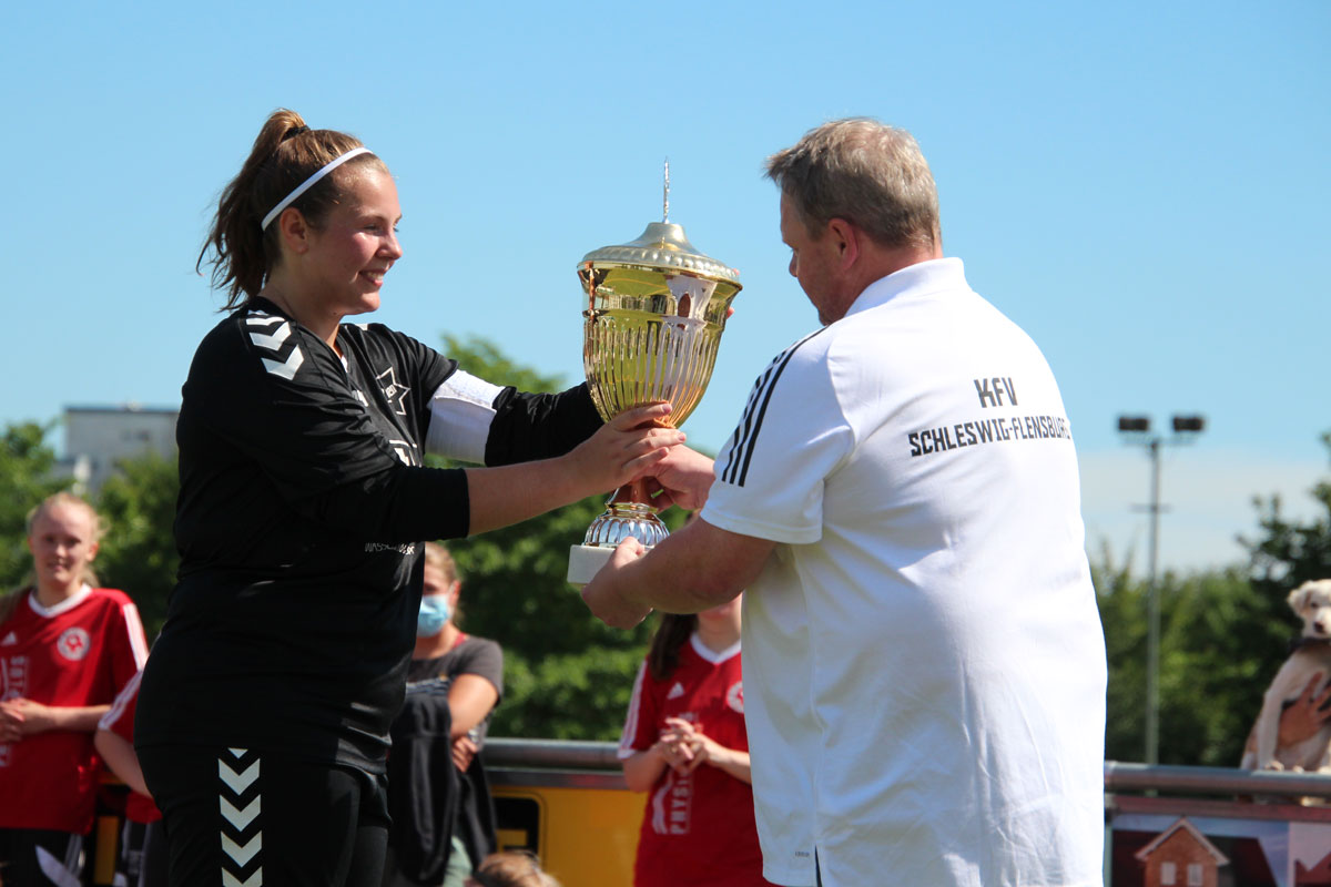 Thorsten Kiesel vom KFV Schleswig-Flensburg zeigte sich bei der anschließenden Siegerehrung erfreut, dass schlussendlich drei Mannschaften sich für die Pokalrunde gemeldet hatten und diese durchgeführt werden konnte. Schließlich rief er Kapitänin Lara Otto zu sich und überreichte ihr den begehrten Pokal.