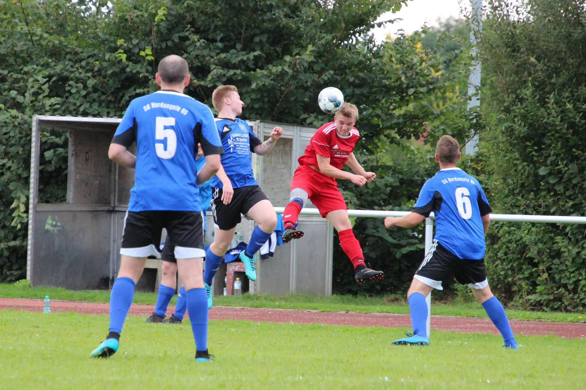 Daniel Matthiesen erhöhte in der 56. Minute auf 5:0 für den TSV Nordmark Satrup, ehe Daniel Schulte zehn Minuten später der Ehrentreffer für die SG Nordangeln gelang. Danny Goos, Ken Dikun und Charbel M. Kponou erhöhten auf 8:1, Kevin Hintz verursachte zudem ein Eigentor. Unschön ging die Begegnung zu Ende. Nordangelns Torhüter bekam unglücklich das Knie von Kponou an den Kopf. Der Neuzugang bekam die gelbe Karte und das Spiel wurde kurz vor Eintreffen des Krankenwagens abgepfiffen.