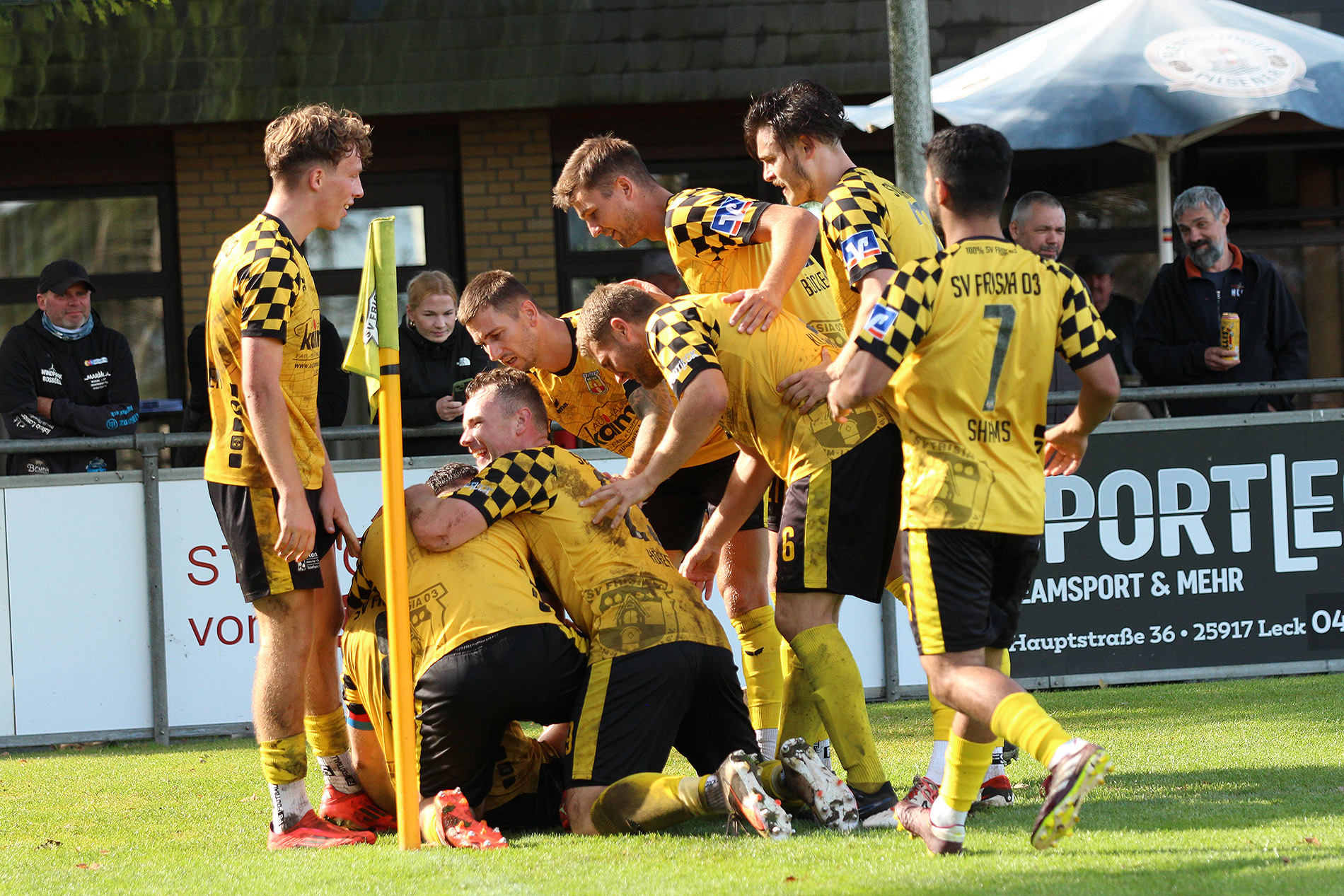 Der SV Frisia 03 Risum-Lindholm verpasste den Gästen nach der Pause direkt eine kalte Dusche, als Erjon Jashanica nach einer Drews-Ecke am zweiten Pfosten frei zum Kopfball kam und Frisia in Führung köpfte (48.).