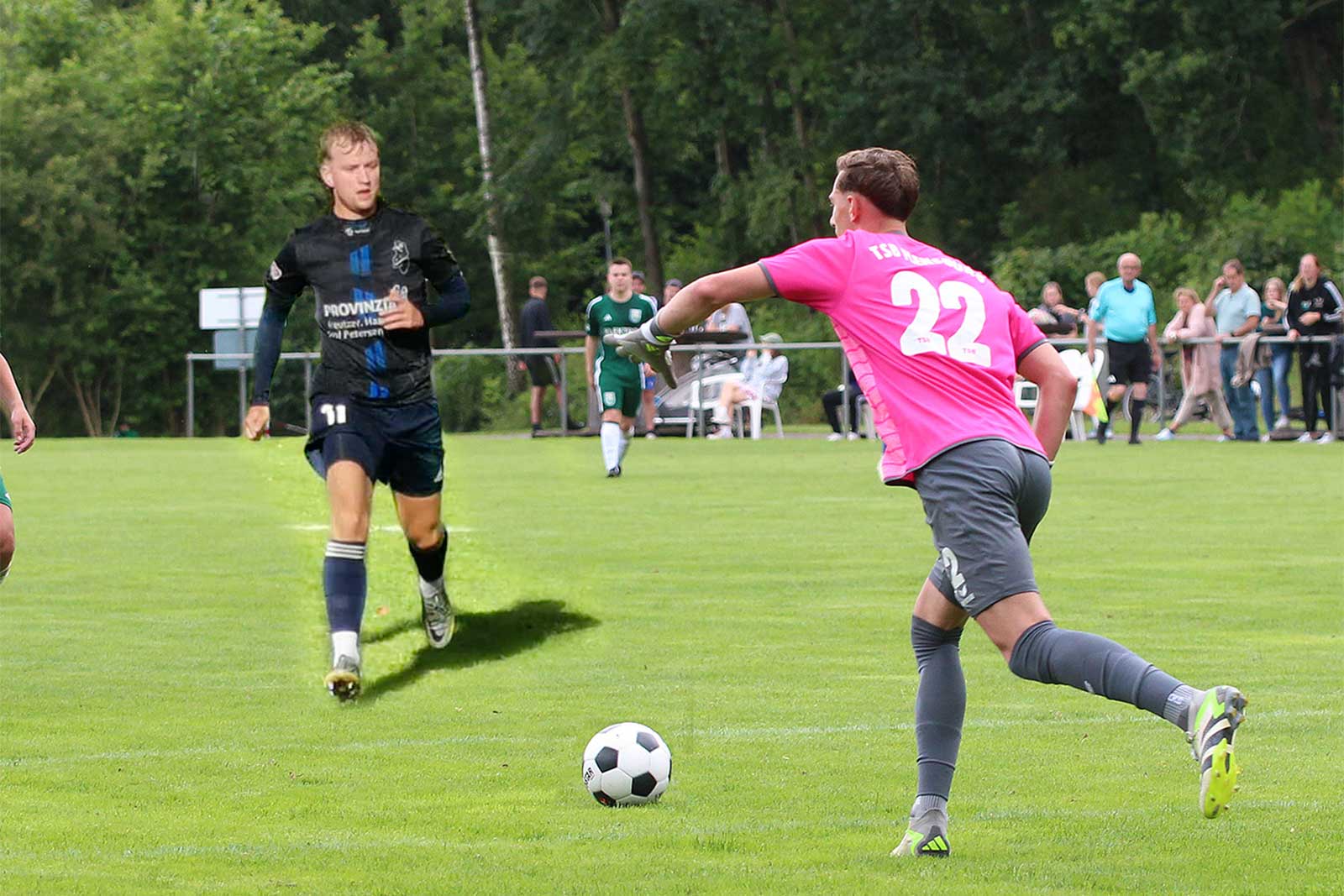 Der TSB Flensburg II bestätigte zeitversetzt gegen die SG Nordau die starke Form. „Wir gingen sehr selbstbewusst und motiviert in die Partie, aber auch mit einem gewissen Respekt“, sagt TSB-Trainer Hamudi El-Sayed und erinnerte sich an umkämpfte Spiele in der Vergangenheit. Am Samstag war es allerdings nur eine Frage der Zeit, bis der Tabellenzweite in Führung ging. „Wir haben den Gegner über das ganze Spiel dominiert“, waren El-Sayed und Hoymar Sörensen von der defensiven Aufstellung der Gäste überrascht.